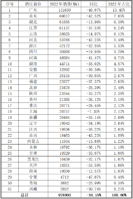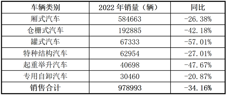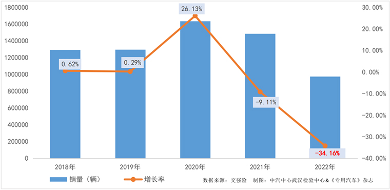 專用汽車銷量五年來降幅最大,2022年同比下滑34.16%