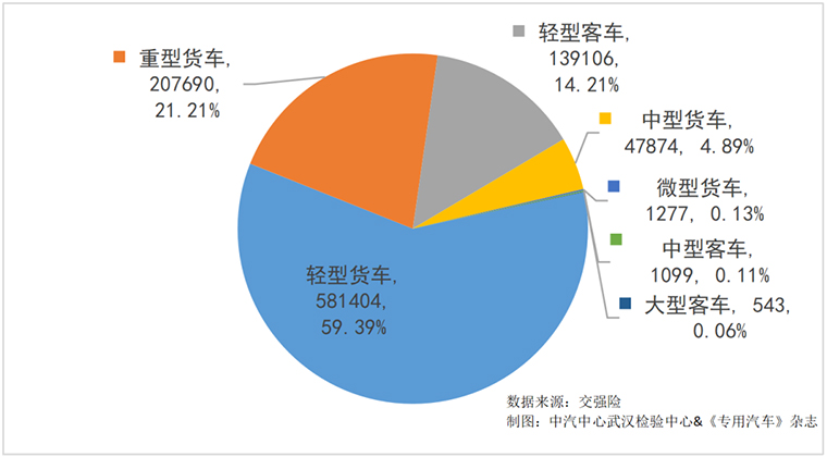 產(chǎn)品噸位情況 從噸位來看,仍以輕型貨車為主,占比近60%。除微型車輛外,其他輕中重三類均有客車改裝類貨車,輕型客車占比較大,為14.21%。客車改裝類貨車用途跟普通貨車差別不大,只是承重力稍差一點(diǎn),能滿足普通貨物運(yùn)輸。