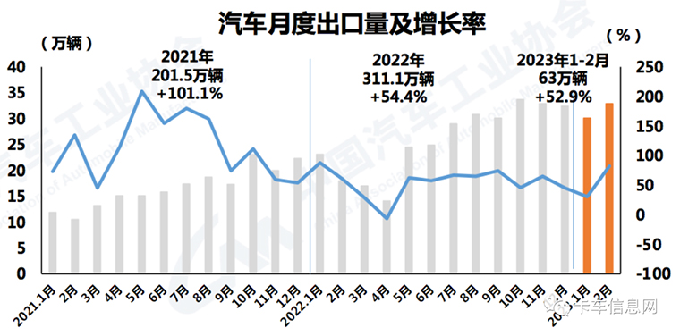 1-2月份,汽車企業(yè)出口63萬輛,同比增長(zhǎng)52.9%。其中,商用車出口10.8萬輛,同比增長(zhǎng)32.9%;新能源汽車出口17萬輛,同比增長(zhǎng)62.8%。